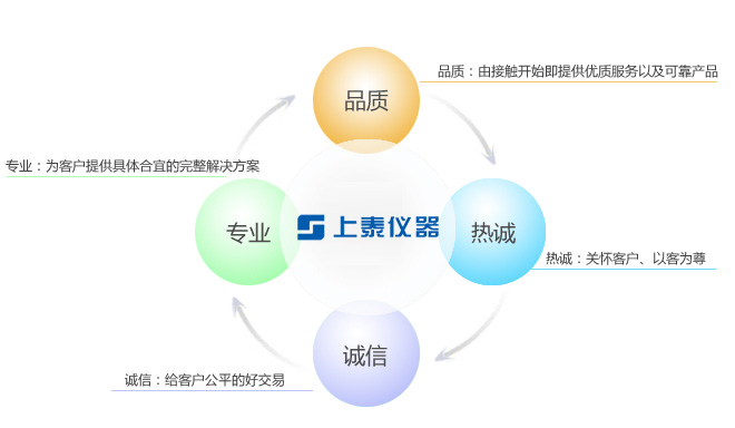上泰儀器自成立至今,秉持著“專業、品質、誠信、熱誠”的經營理念,力行 “主動改善、全員品管、客戶滿意” 的品質政策,更以“顧客導向”為目標,提供精良的產品與服務;為中國科技提升、環境保護等大業作出貢獻。