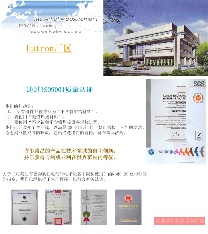 臺灣路昌電子企業(yè)有限公司成立于1976年,并已在測試和測量儀器等領(lǐng)域的超過三十年,臺灣的領(lǐng)先制造商。目前,大約有100個公司的員工,工廠的建設(shè)規(guī)模約為6,410 /六九○○○英尺平方米。