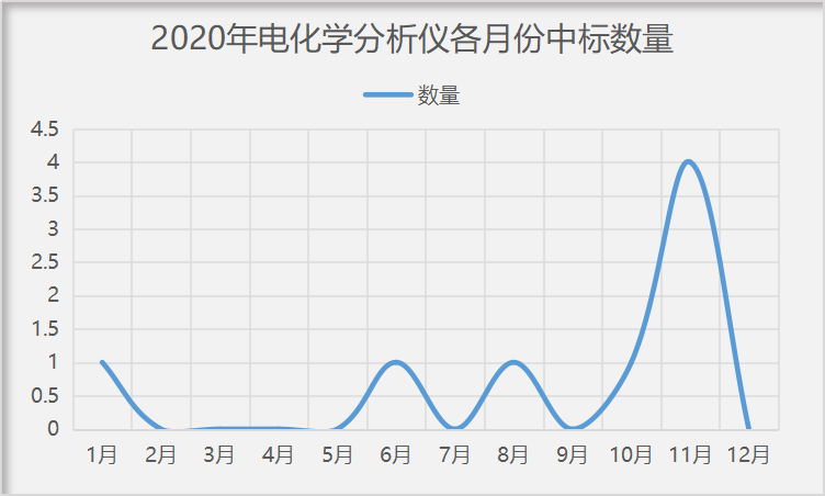 根據編者不完全統計,受新冠疫情影響,2020年上半年電化學分析儀相關招投標活動幾乎停擺,1月中旬后至5月底,市場整體呈現低迷狀態。直至下半年,隨著疫情趨緩,各行各業進入復產復工后,市場活力回升,招投標工作才得以展開,主要集中于11月份,且全年招標活動僅有8場,較往年有所減少。
