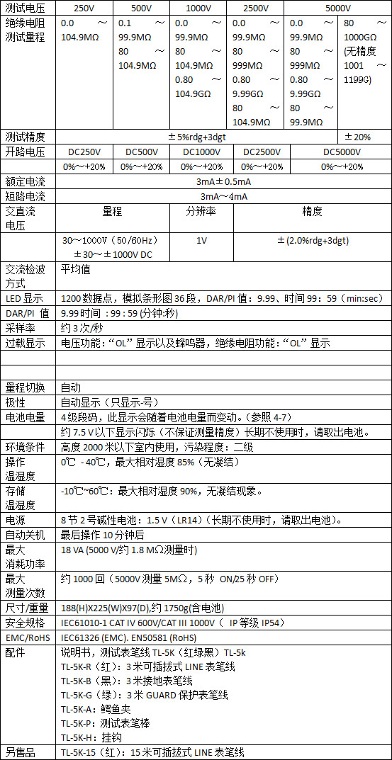 ■ 測試電壓范圍為 250V/500V/1000V/2500V/5000V