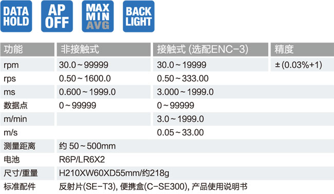 日本三和(sanwa)SE300轉(zhuǎn)速計,外殼獨特的流線型設(shè)計,使用極為方便,是測量馬達等旋轉(zhuǎn)體的轉(zhuǎn)動圈數(shù)的非接觸式和接觸式兩用型手持轉(zhuǎn)速計。
