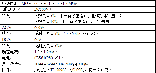 ■ 單測(cè)試量程,測(cè)試電壓DC500V