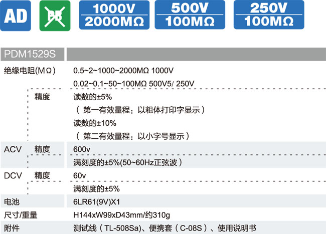 日本三和(sanwa)PDM1529S指針式絕緣電阻測試儀適用于測量各種電機,電纜,變壓器,電訊元器件,家用電器和其它電氣設備的絕緣電阻。采用電池供電,具有體積小、重量輕、便于攜帶等優點。