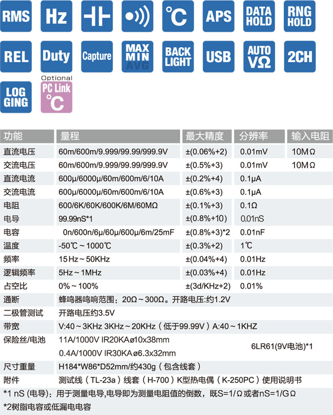 ■ 標(biāo)配鍍金表筆,防腐、防接觸不良,提高測量的精度