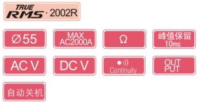測定范圍 ? 精確度 | 交流電流 | 400A/2000A ±1%rdg±3dgt(0~400A) (50/60Hz) ±2%rdg±3dgt(0~400A) (40Hz~1kHz) ±1%rdg±3dgt(0~1500A) (50/60Hz) ±3%rdg±3dgt(0~1500A) (40Hz~1kHz) ±3%rdg(1501~2000A) (50/60Hz) | 400A/2000A ±1.5%rdg±3dgt(0~400A) (45~65Hz) ±2.5%rdg±3dgt(0~400A) (40Hz~1kHz) ±2%rdg±5dgt(0~1000A) (45~65Hz) ±3%rdg±5dgt(1001~1500A) (40Hz~1kHz) ±4%rdg(1501~2000A) (50/60Hz) |
