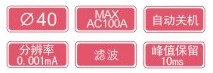 測定范圍 | 交流電流(50/60Hz) | 4/40mA/100A 讀數(shù)的±1%±5位(4/40mA) |