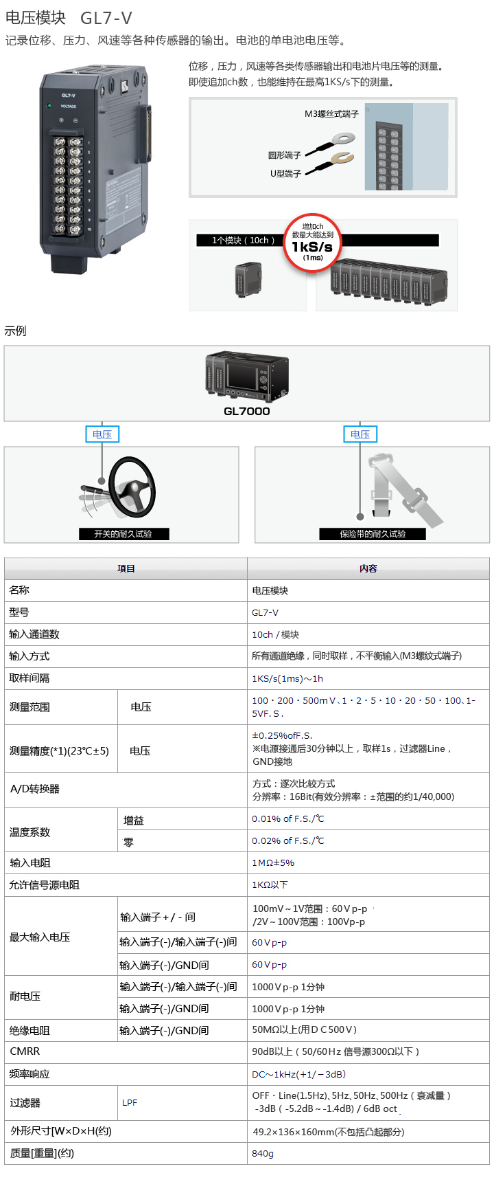 GL7-V電壓模塊是GL7000數據采集系統專用模塊,以下是GL7-V電壓模塊的產品特點和選型指導。