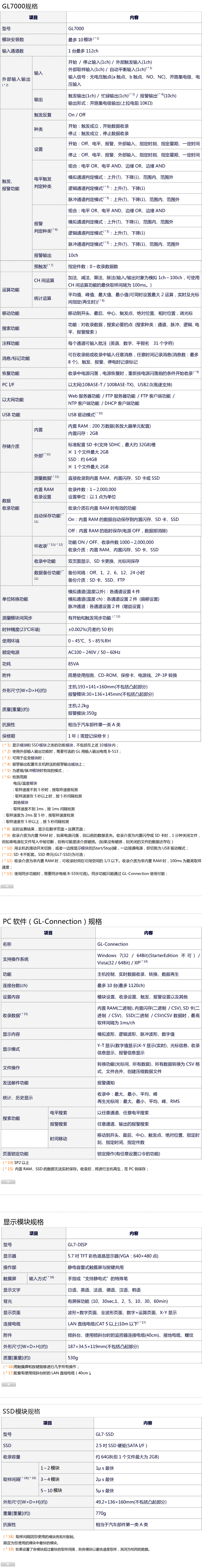 多功能存儲記錄儀GL7000的詳細技術參數: