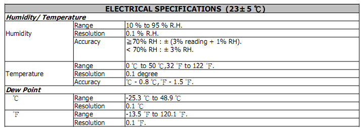 * 0.1 %rh 決議為閱讀,0.1 度分辨率的溫度濕度的。閱讀。