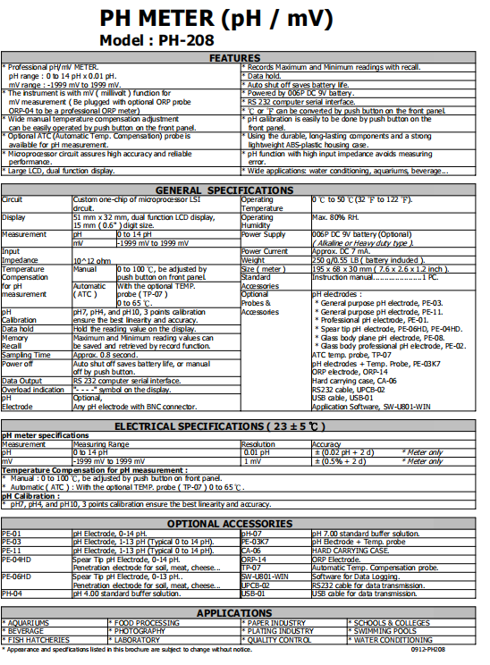 3.雙窗口顯示器 同時顯示PH及溫度值