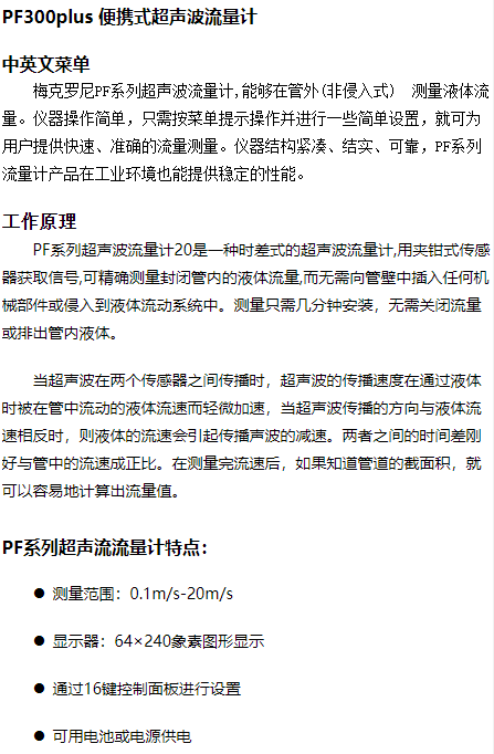 本網頁所展示的有關【美翠 PF300PLUS超聲波流量計】的信息/圖片/參數等由的會員【 美翠METREL-深圳柏萊科技 】提供,由柏萊儀器網-專業銷售儀器儀表服務商-深圳柏萊科技有限公司會員【 美翠METREL-深圳柏萊科技 】自行對信息/圖片/參數等的真實性、準確性和合法性負責,本平臺(本網站)僅提供展示服務,請謹慎交易,因交易而產生的法律關系及法律糾紛由您自行協商解決,本平臺(本網站)對此不承擔任何責任。您在本網頁可以瀏覽【美翠 PF300PLUS超聲波流量計】有關的信息/圖片/價格等及提供 【美翠 PF300PLUS超聲波流量計】的商家公司簡介、聯系方式等信息。