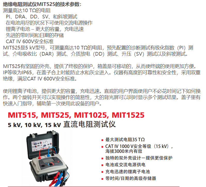 本網頁所展示的有關【MIT515 5kV絕緣電阻測試儀 美國Megger】的信息/圖片/參數等由的會員【美國MEGGER-深圳柏萊科技有限公司 】提供,由柏萊儀器網-專業銷售儀器儀表服務商-深圳柏萊科技有限公司會員【美國MEGGER-深圳柏萊科技有限公司 】自行對信息/圖片/參數等的真實性、準確性和合法性負責,本平臺(本網站)僅提供展示服務,請謹慎交易,因交易而產生的法律關系及法律糾紛由您自行協商解決,本平臺(本網站)對此不承擔任何責任。您在本網頁可以瀏覽【MIT515 5kV絕緣電阻測試儀 美國Megger】有關的信息/圖片/價格等及提供 【MIT515 5kV絕緣電阻測試儀 美國Megger】的商家公司簡介、聯系方式等信息。