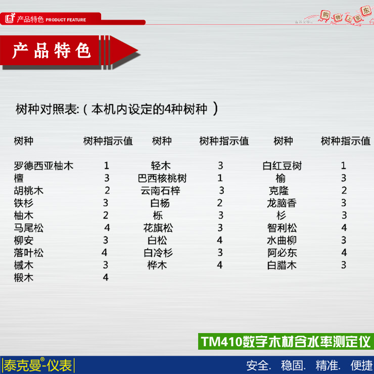 本網頁所展示的有關【TM410數字式木材水分儀|TM-410】的信息/圖片/參數等由的會員【泰克曼-深圳柏萊科技有限公司 】提供,由柏萊儀器網-專業銷售儀器儀表服務商-深圳柏萊科技有限公司會員【泰克曼-深圳柏萊科技有限公司 】自行對信息/圖片/參數等的真實性、準確性和合法性負責,本平臺(本網站)僅提供展示服務,請謹慎交易,因交易而產生的法律關系及法律糾紛由您自行協商解決,本平臺(本網站)對此不承擔任何責任。您在本網頁可以瀏覽【TM410數字式木材水分儀|TM-410】有關的信息/圖片/價格等及提供 【TM410數字式木材水分儀|TM-410】的商家公司簡介、聯系方式等信息。
