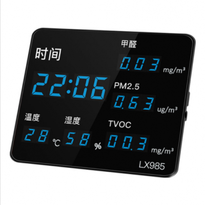 2.配有強光LCD(藍色和紅色)以及三個表情圖標提示,可顯示室內甲醛濃度警報等級。