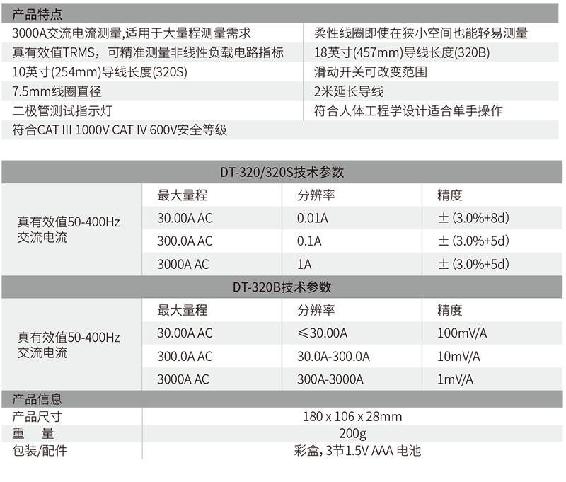 本網頁所展示的有關【華昌盛 DT-320B 3000A交流真有效值柔性線圈鉗形表】的信息/圖片/參數等由的會員【華盛昌CEM-深圳柏萊科技有限公司