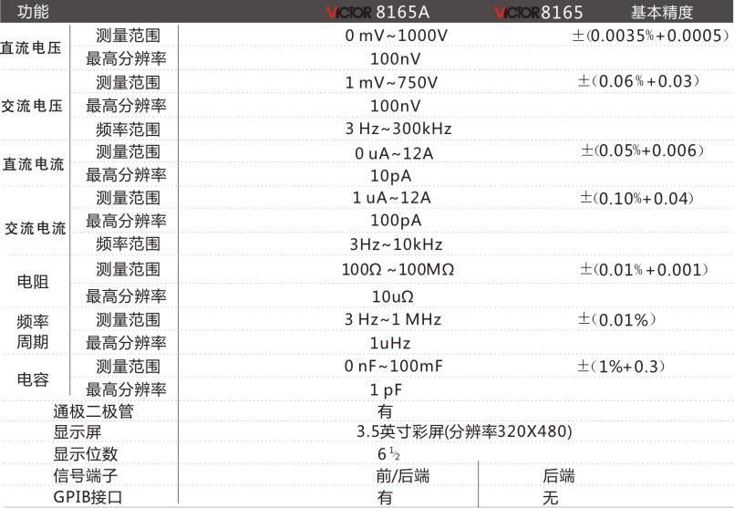 VICTOR 8165/8165A臺式萬用表