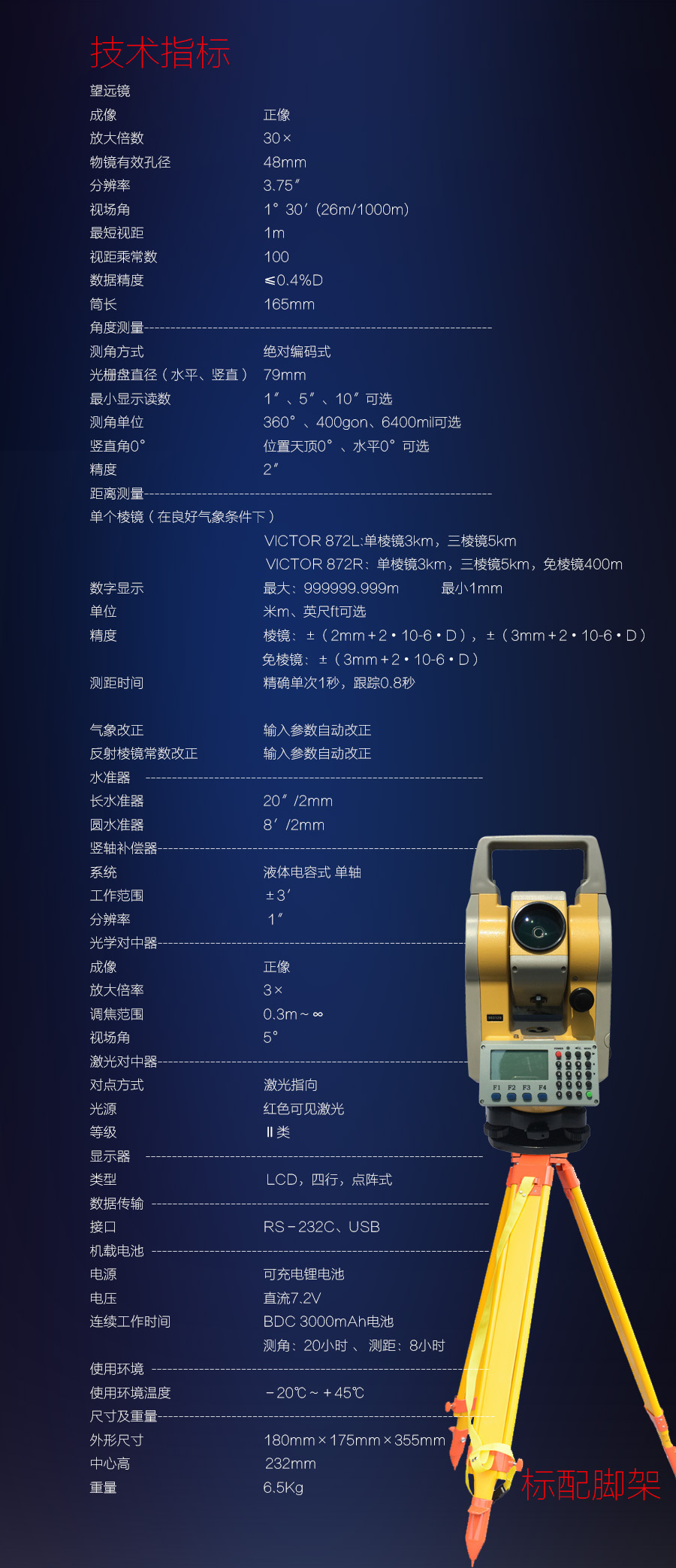 本網頁所展示的有關【VICTOR 872L/872R激光全站儀】的信息/圖片/參數等由的會員【勝利victor-深圳柏萊科技有限公司 】提供,由柏萊儀器網-專業銷售儀器儀表服務商-深圳柏萊科技有限公司會員【勝利victor-深圳柏萊科技有限公司 】自行對信息/圖片/參數等的真實性、準確性和合法性負責,本平臺(本網站)僅提供展示服務,請謹慎交易,因交易而產生的法律關系及法律糾紛由您自行協商解決,本平臺(本網站)對此不承擔任何責任。您在本網頁可以瀏覽【VICTOR 872L/872R激光全站儀】有關的信息/圖片/價格等及提供 【VICTOR 872L/872R激光全站儀】的商家公司簡介、聯系方式等信息。