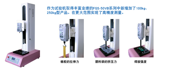 電動立式測力儀試驗支架 測力儀試驗支架通過更換數字式測力儀(推拉力計),即可支持2N~2500N的負載測量。采用USB接口,通過免費專用聯機軟件"FGT-VC"可以將支架的移動距離和負載,以圖表形式用電腦輕松讀取。 | ||
