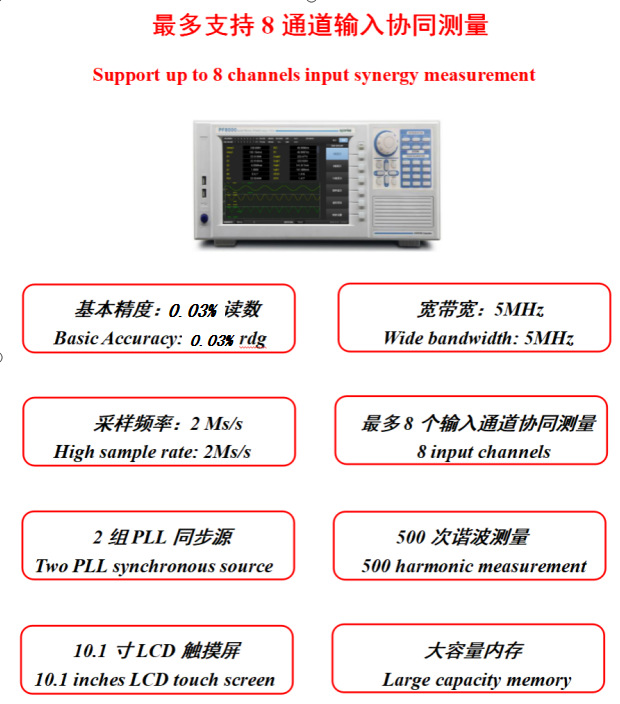 PF6000功率分析儀,是一款多功能、高性能的功率分析儀,適用于生產、測試、評價和科研等多個領域,可為電動汽車、軌道交通、光伏、風電、電機、變頻器、燃料電池、照明電路和開關電源等多種產品的開發和測試提供幫助,提高產品研發和生產測試效率。產品滿足IEC61000-4-7等標準要求。
