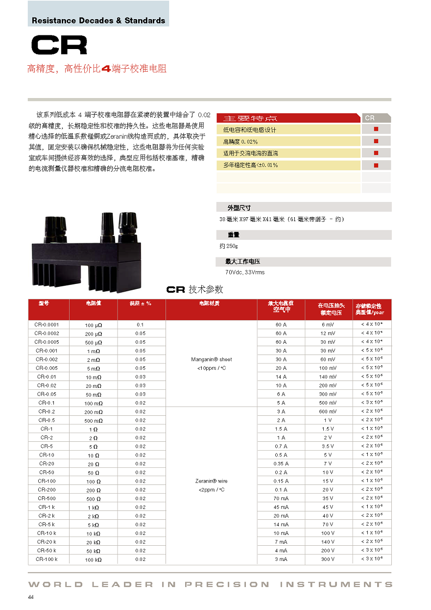 高美測(cè) CR系列計(jì)量校準(zhǔn)用精密電阻