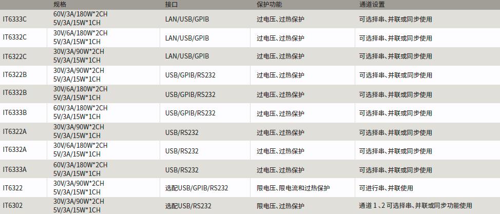 IT6300系列為高性能的可編程三路直流電源,每路輸出電壓和電流均可設定為從0到最大額定輸出值。該系列提供了通道的串聯、并聯以及同步功能,可以給客戶的測試帶來多用途的解決方案。該系列具有1mV/1mA的高分辨率,具有高精度以及高穩定性的特征,并且配備了遠端測量的功能,可以使測試更加準確。內置的標準的USB /RS232/GPIB 通訊接口,大大提升了通訊速度,并且客戶還可以利用光標調節數字步進值來方便操作。
