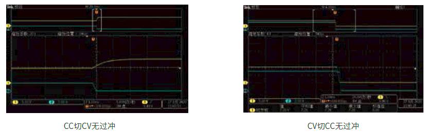 允許用自行設定ON時的輸出模式,防止電源輸出ON時的過沖。選擇CV優(yōu)先模式,電源優(yōu)先高速建立電壓的同時抑制電壓過沖的產(chǎn)生。選擇CC優(yōu)先模式,電源優(yōu)先高速建立電流的同時抑制電流過沖的產(chǎn)生。