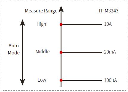 IT-M3200提供多檔位(Low/Middle/High/Auto)電流量程切換,分辨率高達10nA,滿足用戶從安培級別到微安級別的電流量測需求,尤其是Auto檔讓用戶無需手動控制,即可實現(xiàn)高低電流量測的靈活切換。此功能適用于5G、可穿戴設備及其他低功耗領域測試。