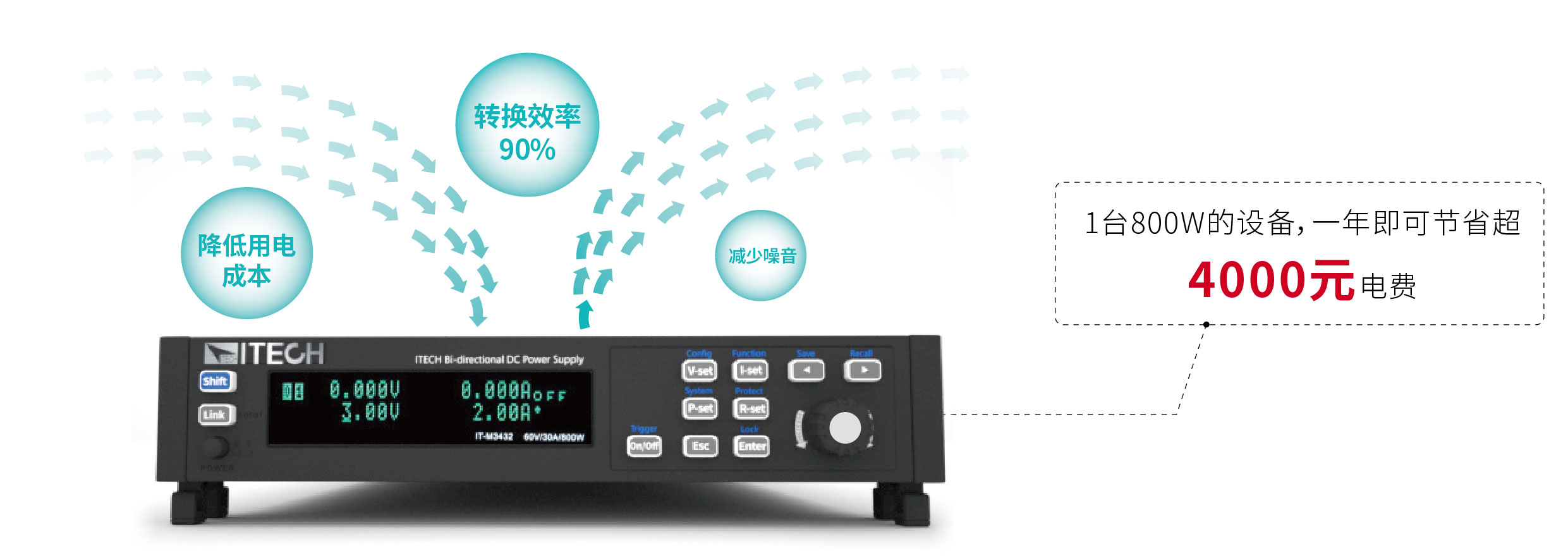 IT-M3400具備能量回收功能,可以回收電能,轉(zhuǎn)換效率最高可達90%,大大降低了用戶的用電成本,同時也避免使用空調(diào)或昂貴的制冷系統(tǒng),減少噪音。