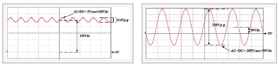 ? 可實(shí)現(xiàn)AC、DC、AC+DC各個(gè)輸出模式,AC+DC模式可實(shí)現(xiàn)直流電壓偏移模擬