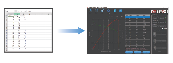 ? 支持.csv文件導入功能,最多可導入4096點(I-V)數據