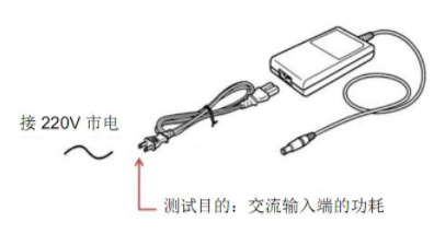 測試 AC-DC 適配器的交流輸入功耗,需將 IT9121E 串聯到適配器與市電之間的線路中。