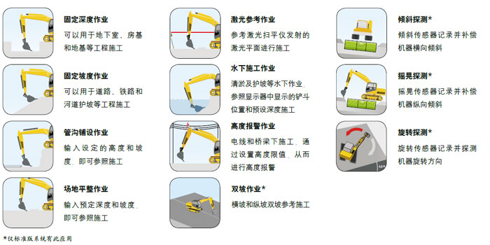 可視高度和坡度引導(dǎo),提供參考高度和坡度等作業(yè)信息給操作手,使其在不可視施工環(huán)境中更直觀的工作;全新的施工方式,施工更容易,更高效;