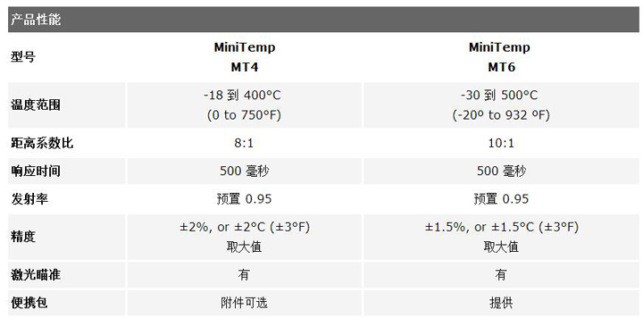 雷泰 MiniTemp MT 系列非接觸測溫儀尺寸較小,可裝在口袋里,并且易于使用,您只需瞄準目標、扣動扳機、即可在大顯示屏上讀取溫度讀數。