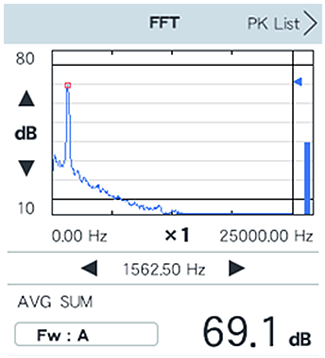 使用FFT頻譜分析功能能夠對聲音進行狹帶域的高精度分析。通過平均處理功能,可使頻譜波形穩定,另外通過使用觸發功能,不僅穩態噪聲,即使是單發噪聲現象也可撲捉進行分析。