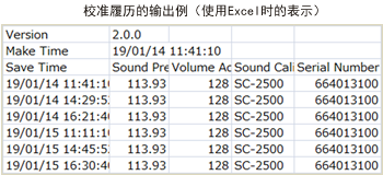 保存項目:(校準值,調整用VR位置,使用的聲壓校準器/內部基準信號,日期時間)
