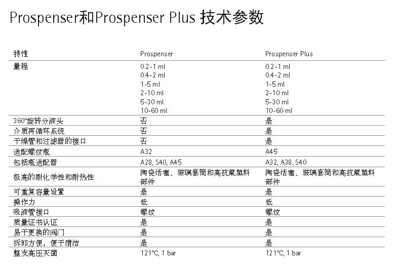 Prospenser和Prospenser Plus憑借其高品質材料提供優異的耐化學性。陶瓷活塞具有化學穩定性,能與絕大多數液體兼容。