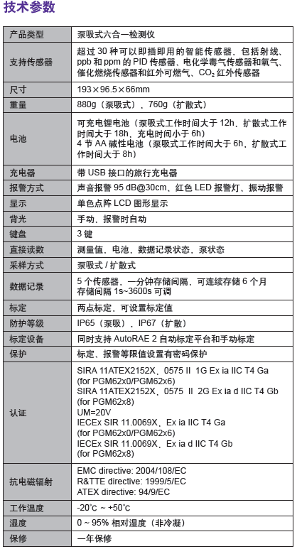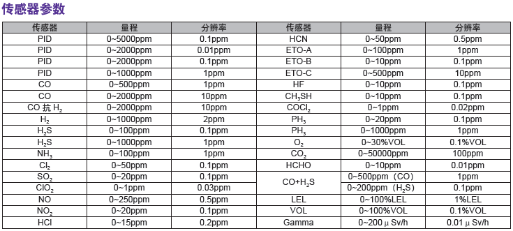超過30種可以即插即用的智能傳感器,包括射線,ppb和ppm的PID傳感器,電化學毒氣和氧氣傳感器,