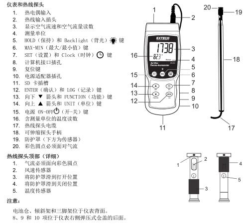 傳感器類型 針對風速和氣流測量的熱線熱敏電阻 內(nèi)置于熱線探頭內(nèi)的溫度傳感器熱敏電阻 用于遠程溫度測量的熱電偶
