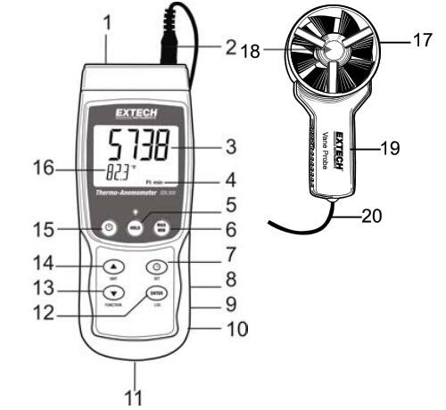 3.持有探頭由其句柄,并允許氣流進(jìn)入葉片。注意空氣流通必須面對葉片的彩色圓點(diǎn)。