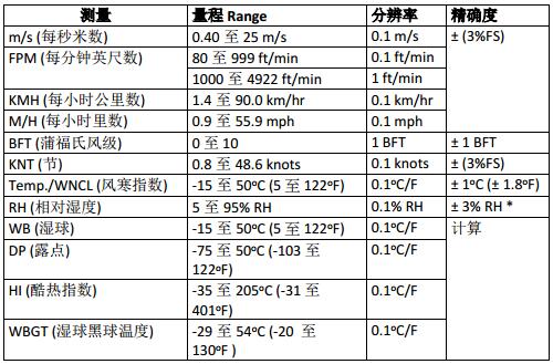 內置多參數傳感器測量空氣速度,熱指數,濕球溫度(WBGT),濕度,環境溫度,露點,濕球,溫度和風車