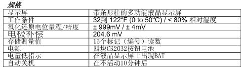 3. 記錄氧化還原電勢(shì)或按下模式按鍵凍結(jié)讀數(shù)。將顯示“保持”圖標(biāo)以及所保持的讀數(shù)。