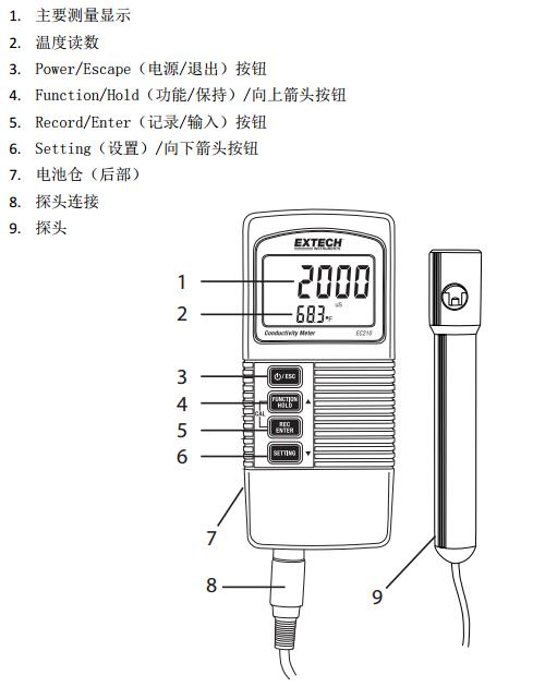 8. 按下并按住 FUNCTION 按鈕至少 2 秒鐘將返回電導率測量模式。