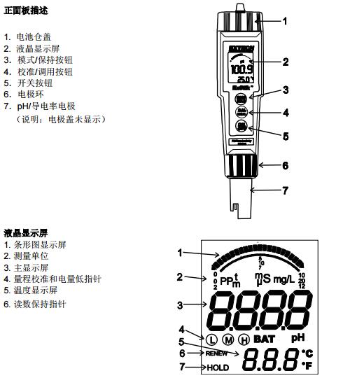 儀表可以設置為測量pH, 導電率,總溶解固體或鹽度。