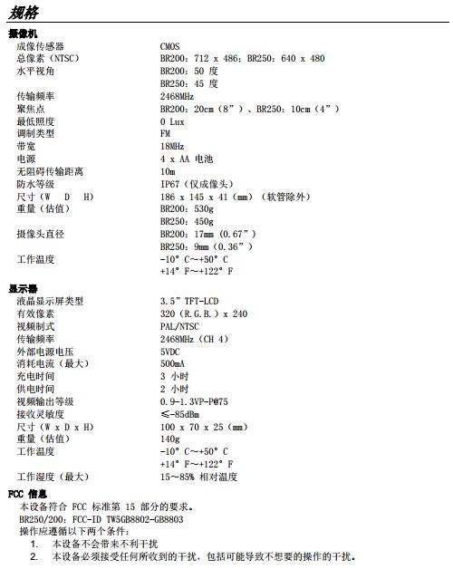 BR200 型(17mm 攝像頭)視頻內窺鏡。該儀表是一款遠程檢驗裝置。可用于檢查空間狹小的部位,并提供可以記錄的實時視頻和圖像。典型的適用范圍包括 HVAC(暖通空調)檢驗、汽車檢驗、電纜敷設和機動車/船舶/飛機檢驗。該儀表在交付前均經過完整測試,只要妥善使用,您便可常年享受其可靠服務。