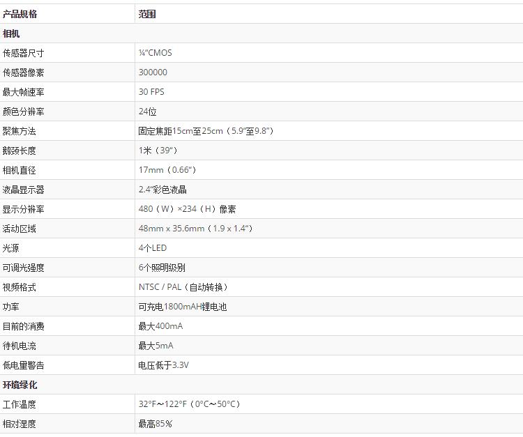 BR50是一款視頻內窺鏡和相機測試儀,具有17mm相機直徑和2.4英寸彩色TFT液晶顯示器。也可以測試安裝的監控攝像機進行正確的目標對齊。應用范圍包括:家庭檢查:在墻壁檢查霉菌,蟲害,電線或水管位置; HVAC:檢查管道內部,電機和壓縮機后面; 汽車:查看內部或周圍的發動機和變速箱; 政府:安全檢查; 工業:檢查焊接完整性,工藝設備,齒輪,成型機; 航空航天:飛機檢查污染,碎片,裂縫或其他損壞。配有可充電鋰電池,通用交流適配器和帶USB電纜的充電器。