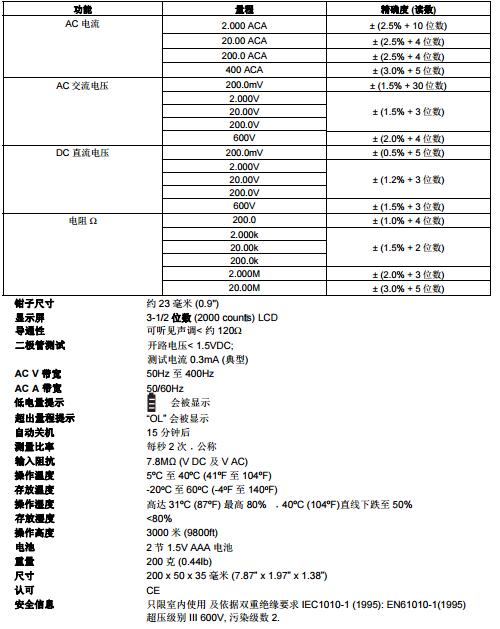 MA200緊湊型鉗表具有2,000計(jì)數(shù)LCD顯示屏,具有高精度的電流測量。它具有0.9“(23mm)鉗口尺寸,可容納高達(dá)300MCM的導(dǎo)體,該儀表具有連續(xù)性蜂鳴器和二極管測試以及數(shù)據(jù)保持功能和最大保持功能,并且MA200具有所有量程的過載保護(hù),超大范圍和低電量指示器,該Extech儀表具有自動關(guān)閉功能,具有自動關(guān)機(jī)功能,Extech MA200緊湊型鉗表配有測試線,手提箱和兩節(jié)AAA電池。