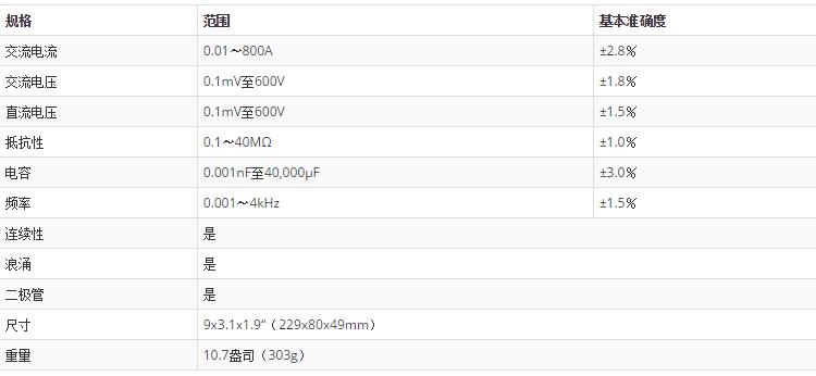 多功能表功能包括交流電流,交流/直流電壓,電阻,頻率,電容,二極管和連續性