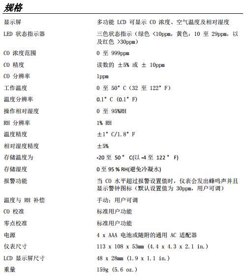 讀數(shù)超過所選范圍的可調(diào)聲音報警:25ppm,30ppm,35ppm,50ppm,100ppm或200ppm