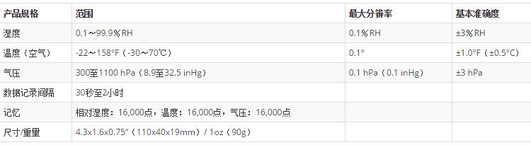 緊湊型外殼,內置NTC熱敏電阻,電容式濕度傳感器和大氣壓力MEMS傳感器,設計有標準USB連接器,便于將數據下載到PC