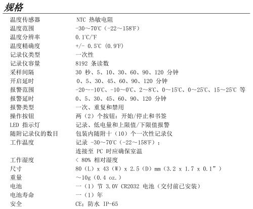 THD5 型“一次性”USB 溫度記錄儀。該款記錄儀專用于監測需要符合冷藏鏈物流要求的產品的運輸。THD5 是一款易于使用、防水(IP65)的 USB 便攜式溫度記錄儀。THD5 使用 USB 2.0 接口,可插入 PC 由用戶對數據記錄儀進行設置。這樣,THD5 即可放在需要監測溫度之處。放置妥當后,用戶可以按下 START(開始)按鈕開始記錄。記錄完成后,可以重新將THD5 插入 PC 并生成所記錄的溫度讀數的 PDF 報告(需要 Adobe Reader? 軟件)。隨附十(10)個一次性記錄儀;每個可以記錄 8192 條溫度讀數。該儀表在交付前均經過全面測試和校準。